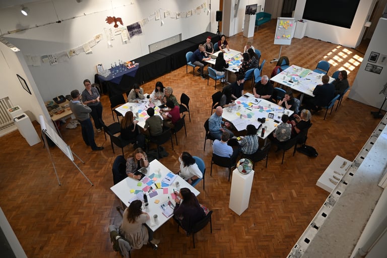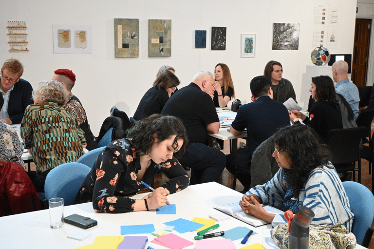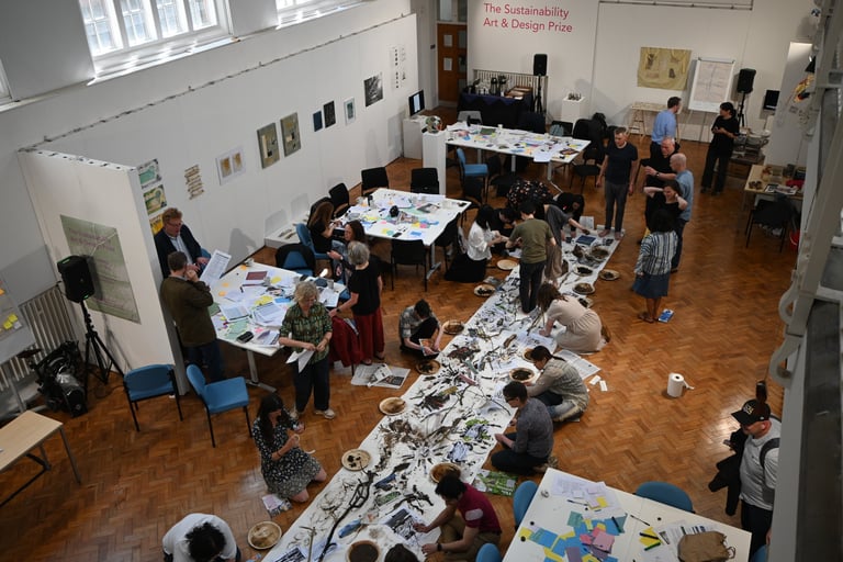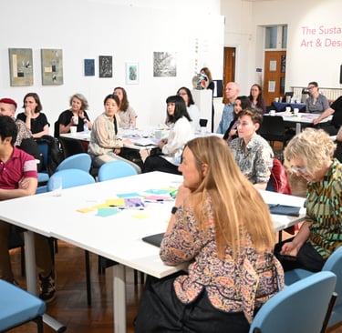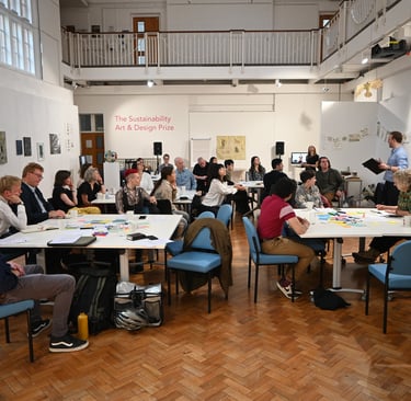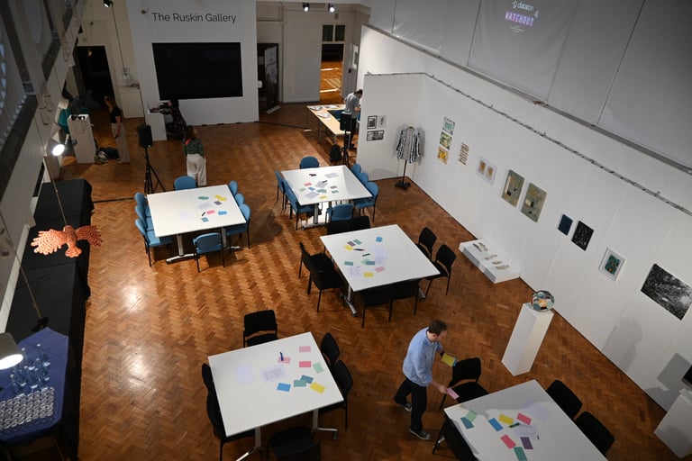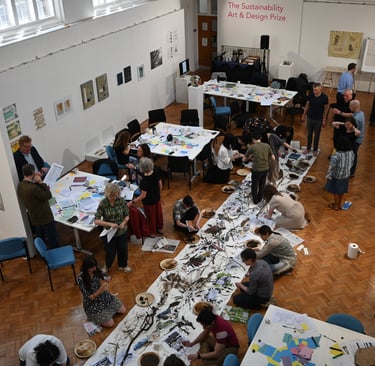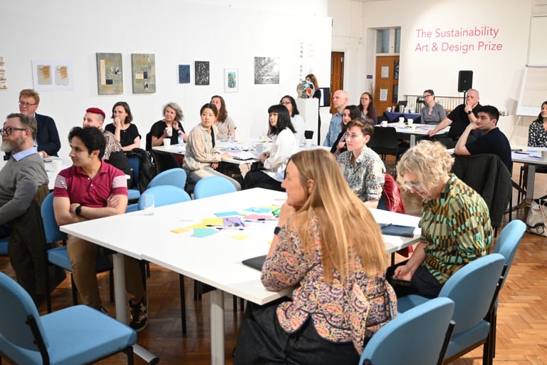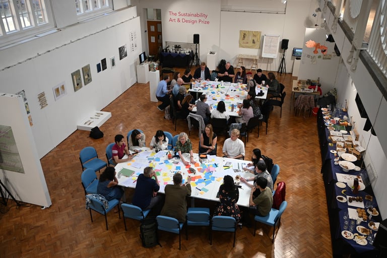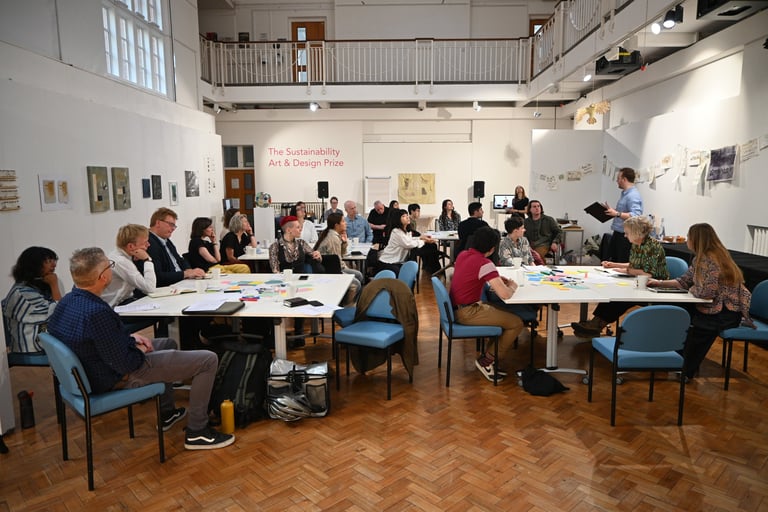 After an experimental session (pictured right) led Dr Sarah Royston and several LEAP Lab members, attendees explored the exhibited artworks around them which were being judged for the re-launched Sustainability Art and Design prize, before moving into an afternoon of co-design. Through agile workshops and collaborative discussions, the group developed project concepts, identified cross-cutting needs, and crafted a shared roadmap for the emerging DIALOGUE network